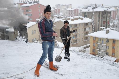 Üniversiteye hazırlanan Yusuf Çakır ise, çatı temizleyerek aile bütçesine katkıda bulunmak istediğini vurgulayarak “Çatı temizleyerek Üniversiteye hazırlanıyorum, kar yağışıyla birlikte okul harçlığımı çıkartmaya çalışıyorum. Eniştemle birlikte çatı tutarak ekmek paramı çıkarmak, okul paramı ve babama yük olmamak için kar temizliği yapıyorum. Kar yağışı böyle devam ederse birkaç çatı daha tutup yevmiyemizi çıkarırız” şeklinde konuştu.