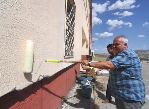 Varto Çaylar Yatılı Bölge Ortaokulunun fedakar öğretmen ve idarecileri, yaz döneminde tatil yapmak yerine okullarını boyayıp, tahrip olan yerlerini onarıyor