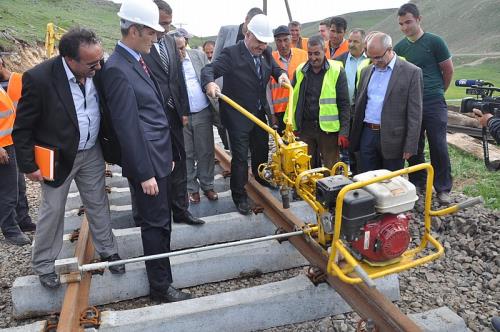 Malatya Devlet Demiryolları 5. Bölge Müdürü Üzeyir Ülker ise 2 binli yıllardan sonra siyasi iradenin, devlet demir yollarını yeniden devlet politikası haline getirdiğini, bir taraftan yüz yıla yakın eskimiş hatları yenilerken bir taraftan da yeni teknolojileri kurum içine yerleştirmeye başladığını belirtti. Hatta bin 400 kilometreye yakın hattı carilerinin bulunduğunu ve 5`nci bölgede 4 yılda 550 kilometre yol yenilediklerini ifade eden Ülker, konuşmasını şöyle sürdürdü: "Bu yıl da Muş-Tatvan, Van-Kapıköy arasındaki 223 kilometrelik yolumuzu yenileyerek, altyapı problemimizi bitireceğiz. Bu yoldaki mevcut ahşap traversler 1964 yılında yapılmış. Bugüne kadar bakımlarla hizmetler yürütülmüş. Ancak standartlar düştüğü için 90 ile 100 kilometreyle gitmesi gereken trenlerimiz 30 kilometreyle yoluna devam eder hale gelmişti. Bu nedenle insanımızı bıktırmışız. Demiryolunu metresi 59 kilogram olan 49`luk rayla yenileyeceğiz. Yaklaşık 4 ay içinde yolun 50 kilometrelik kısmını tamamlayacağız."
