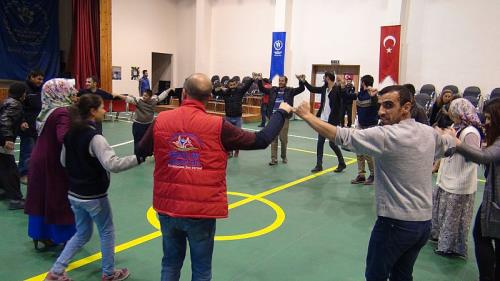 Down sendromu, otistik, ağır, hafif ve orta derece zihinsel engellilerden oluşan engellilerin sosyal faaliyetlerle yönlendirilmesi amacıyla Gençlik Merkezi’ne getirilen öğrenciler, Gençlik Liderleri ve öğretmenleri eşliğinde basketbol oynayarak halaylar çekti. Salonda stres atan engelli öğrenciler daha sonra ebru sanatı ile tanıştılar. İlk defa ebru yapan engelli öğrenciler, Ebru Sanatı Usta Öğreticisi Tuba Yener’in tecrübesi ve desteğiyle unutulmaz anlar yaşadılar.