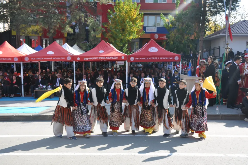 Kent meydanında düzenlenen törene, İl Jandarma Komutanı Albay Kasım Ermiş, Cumhuriyet Başsavcısı Hüseyin Kantar, Emniyet Müdürü Serkan Karaman, MŞÜ Rektörü Prof. Dr. Mustafa Alican, kurum amirleri ve öğrenciler katıldı.