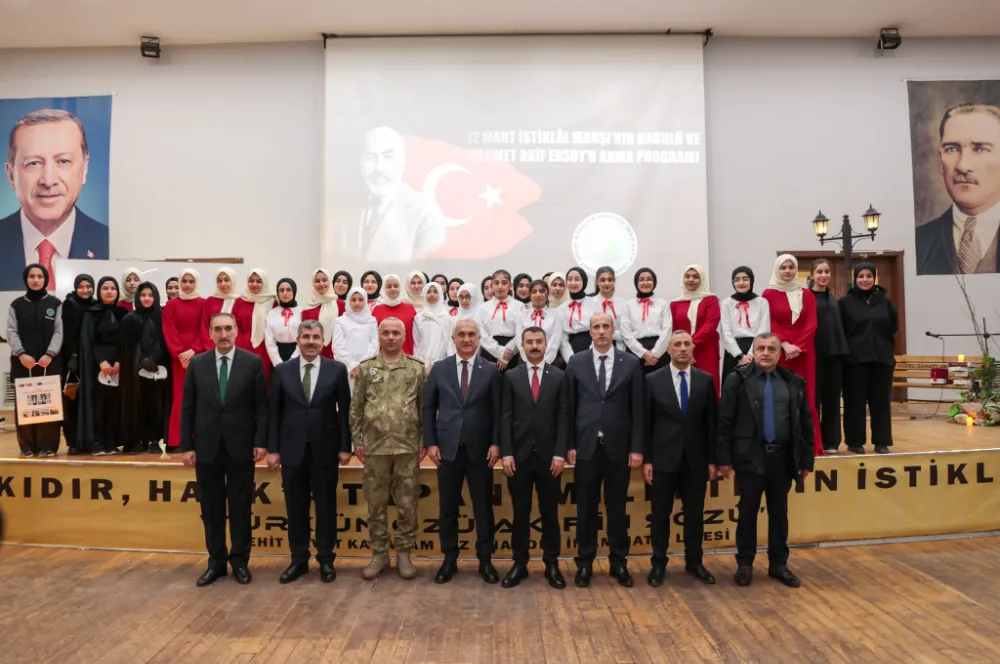Muş Milli Eğitim Müdürlüğü tarafından ‘12 Mart İstiklal Marşı’nın Kabulü ve Mehmet Akif Ersoy’u Anma’ programı gerçekleştirildi. Programda Şehit Davut Karaçam Kız Anadolu İmam Hatip Lisesi öğrenciler tarafından oynanan İstiklal Marşı’nın kabulü gösterisi izleyicilerin beğenisini kazandı.