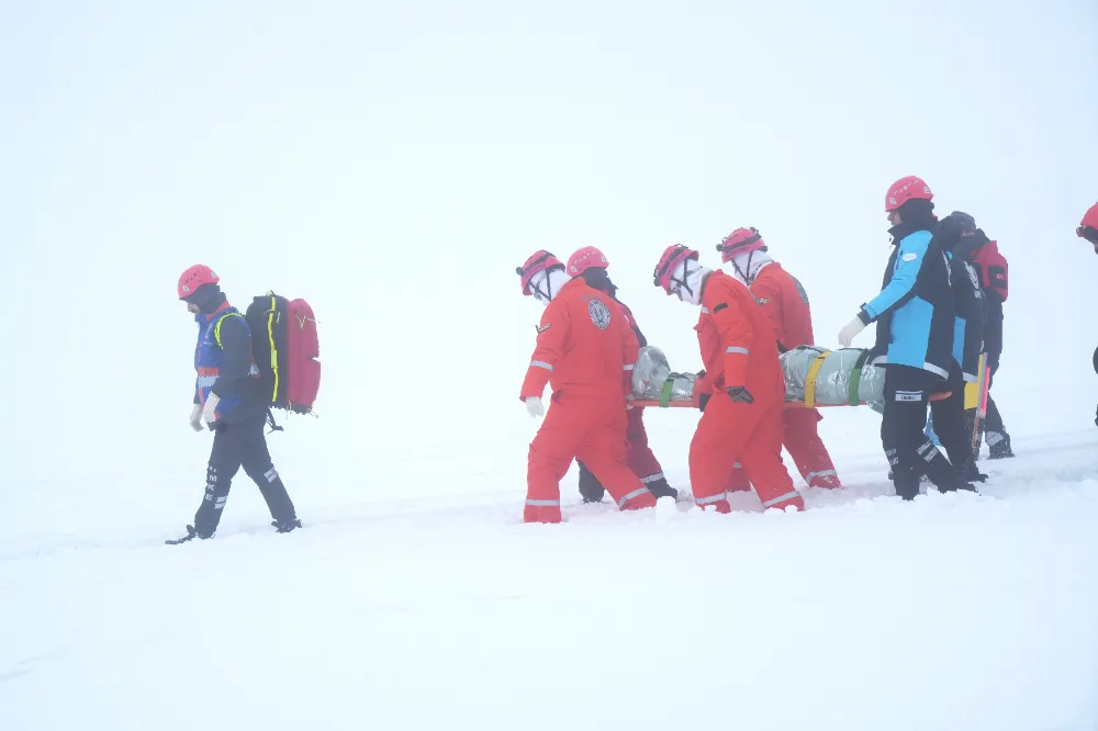 Tatbikat yalnızca çığ bölgesiyle sınırlı kalmadı. Senaryo gereği kayak merkezinde aşırı kar nedeniyle bir vadiye düşen ve mahsur kalan kayakçılar olduğu bilgisi de paylaşıldı. Bu ihbar üzerine ilgili ekipler ikinci noktaya yönlendirilerek eş zamanlı müdahale gerçekleştirildi. Böylece farklı alanlarda aynı anda kriz yönetimi pratiği yapıldı.