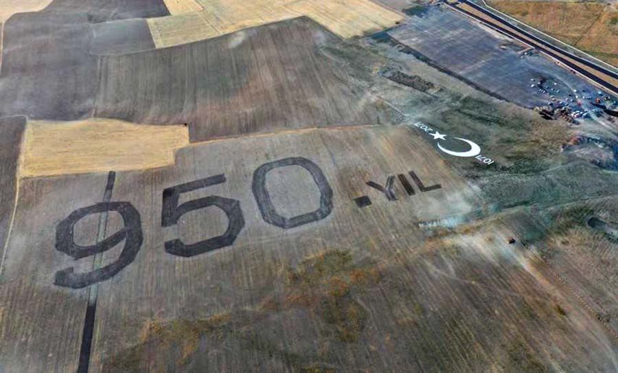 Tarım ve Orman Bakanlığınca, Türklerin Anadolu'yu yurt edinmesini sağlayan Malazgirt Zaferi'nin yıl dönümü dolayısıyla 41 bin metrekarelik alan, traktörlerle sürülerek "950. Yıl" yazısı oluşturuldu.