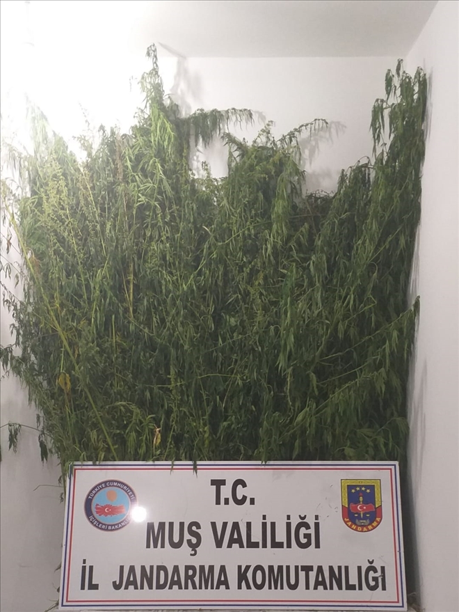 Açıklamada; ?İl Jandarma Komutanlığı ekiplerince Uyuşturucu ve Bağımlılıkla Mücadele kapsamında yapılan araştırmalar neticesinde; Muş ili Malazgirt ilçesi İyikomşu köyünde, Malazgirt Cumhuriyet Başsavcılığından alınan arama kararına istinaden belirlenen ev ve eklentilerinde yapılan aramalarda şahıslara ait evin önünde bulunan bostan bahçesinde yaklaşık boyları 20 cm ile 3 m arasında değişen, toplam (615) kök kenevir bitkisi ele geçirilmiştir. Yakalanan 3 şüpheli şahıs gerekli yasal işlemler için adli mercilere sevk edilmiştir.