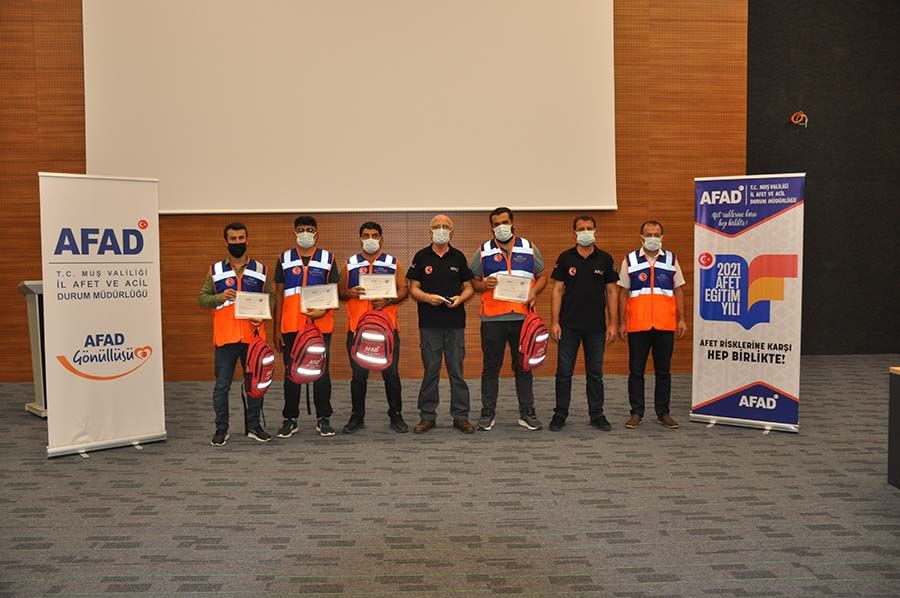 Muş’a dönen AFAD gönüllülerine AFAD Müdürü Veysi As tarafından teşekkür belgesi ve Afet ve Acil Durum çantası verildi.