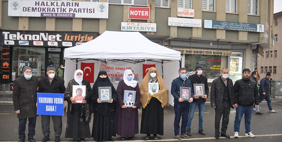 Çocuklarının PKK Terör örgütü tarafından kaçırıldığını iddia eden aileler, çocuklarının kaçırılmasından sorumlu tutukları Halkların Demokratik Partisi (HDP) Muş İl Başkanlığı önündeki nöbetlerinde 34’üncü haftayı geride bıraktılar. Yağışlı havaya rağmen devam eden evlat nöbetine katılan aileler çocuklarına kavuşuncaya kadar eylemlerini devam ettireceklerini belirttiler. Muş’ta şuana kadar toplam 23 aile evlat nöbetine katıldı.