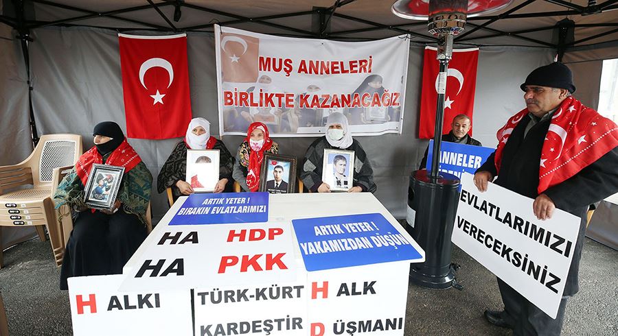 Her hafta Çarşamba günü HDP Muş İl Başkanlığı önünde bir araya gelen aileler kendileri için kurulan çadırda eylem yaparak çocukları için nöbet tutuyorlar. Çocuklarına kavuşana kadar eylemlerini sürdüreceklerini ifade eden aileler, ellerinde tutukları "Yavrumu verin bana", "Anneler direniyor", "Artık yeter, bırakın evlatlarımızı" ve "Artık yeter, yakamızdan düşün" yazılı dövizlerle HDP ve PKK’ya tepki gösteriyorlar.