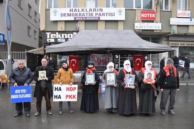 Her hafta Çarşamba günü HDP Muş İl Başkanlığı önünde kendileri için kurulan çadırda bir araya gelen aileler çocuklarının fotoğraflarını ellerinden düşürmezken, "Yavrumu verin bana", "Anneler direniyor", "Artık yeter, bırakın evlatlarımızı" ve "Artık yeter, yakamızdan düşün" yazılı dövizler açarak HDP ve PKK’ya tepki gösteriyorlar.
