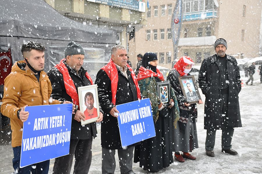 Halkların Demokratik Partisi (HDP) il Başkanlığı önünde evlat nöbeti tutan ailelerin umutlu bekleyişi sürüyor. Kar kış yağmur çamur demeden her hafta Çarşamba günü kendileri için hazırlanan çadırda bir araya gelen aileler bu haftada çocukları için bir araya gelerek evlatlarını HDP’den istediler.
