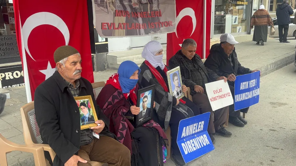 Muş’ta çocuklarının PKK tarafından kaçırıldığını iddia eden ailelerin DEM Parti İl Başkanlığı binası önündeki evlat nöbeti sürüyor.