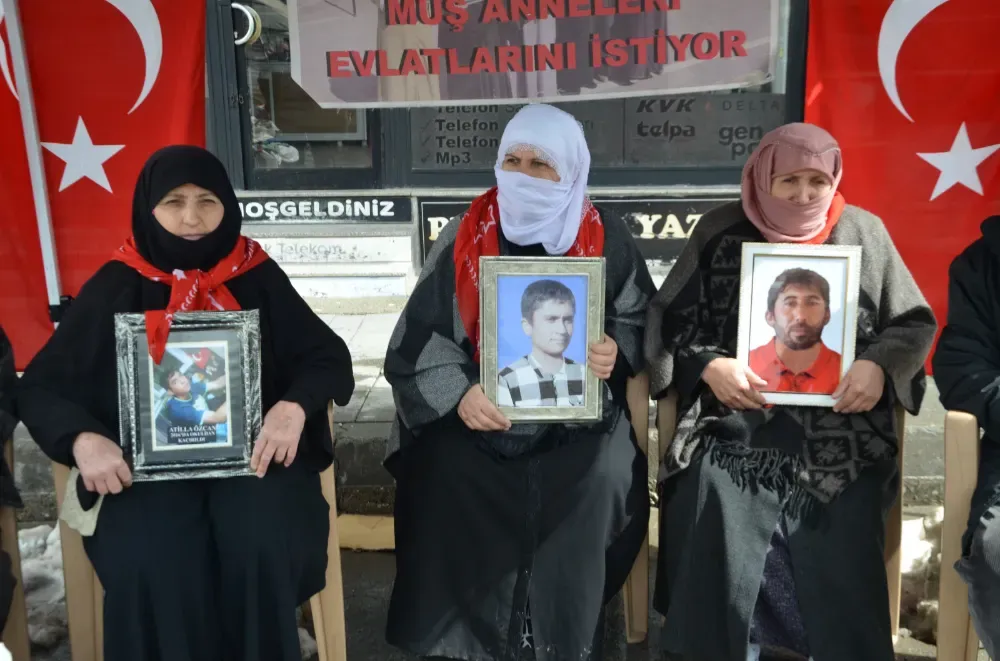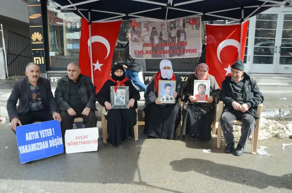 Muş’ta çocuklarının terör örgütü PKK tarafından kaçırıldığını öne süren aileler, DEM Parti İl Başkanlığı binası önünde sürdürdükleri evlat nöbetinde bayram öncesi bir kez daha seslendi: “Tek isteğimiz çocuklarımıza kavuşmak.