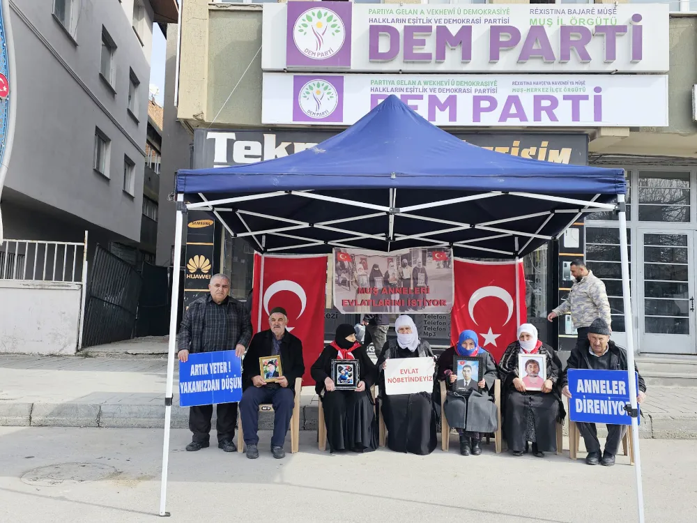 Muş’ta çocuklarının dağa götürüldüğünü belirten aileler, her hafta olduğu gibi bu hafta da DEM Parti İl Başkanlığı binası önünde toplanarak evlatlarına teslim olma çağrısını yineledi.