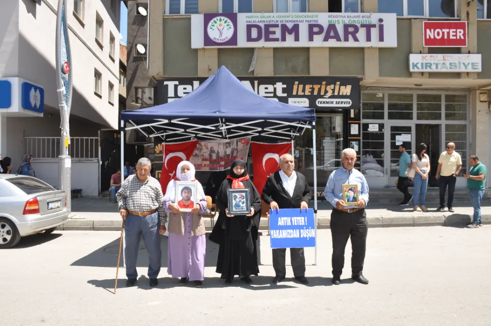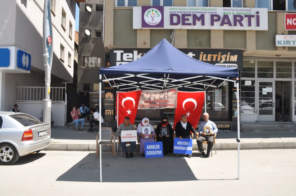 Çocuklarının PKK tarafından dağa kaçırılmasından DEM Parti’yi sorumlu tutan Muşlu aileler, DEM Parti İl Başkanlığı önünde sürdürdükleri evlat nöbetinde 200 haftayı geride bıraktı.