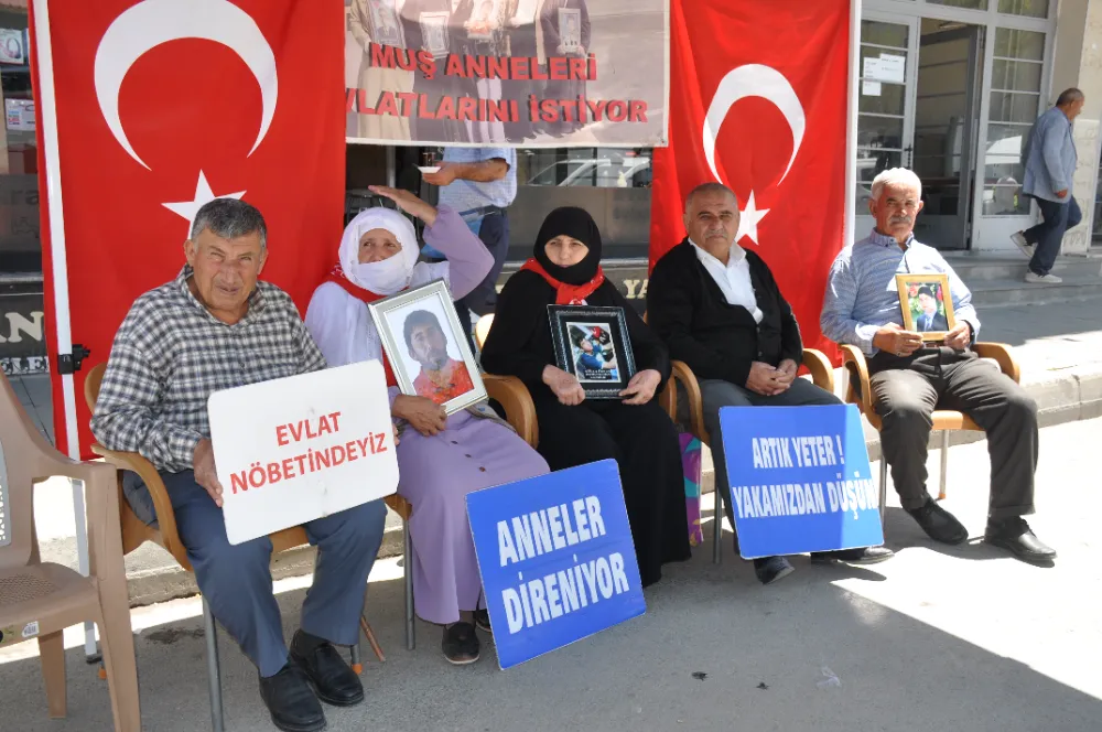 Çocuklarının PKK tarafından dağa kaçırılmasından DEM Parti’yi sorumlu tutan Muşlu aileler, DEM Parti İl Başkanlığı önünde sürdürdükleri evlat nöbetinde 200 haftayı geride bıraktı. Ellerinde çocuklarının fotoğraflarıyla bekleyen aileler, “Teslim olun, evinize dönün” çağrısını yineledi.