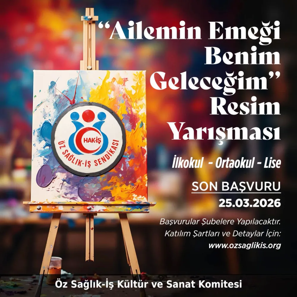 Öz Sağlık-İş Sendikası tarafından çocuklar ve gençlerin sanatsal ifade becerilerini desteklemek amacıyla bu yıl üçüncüsü düzenlenen “Ailemin Emeği, Benim Geleceğim” temalı resim yarışması için başvurular alınmaya başlandı. Türkiye genelinde ilkokul, ortaokul ve lise öğrencilerine açık olan yarışma, Muş’ta Öz Sağlık-İş Sendikası Muş Şube Başkanlığı koordinasyonunda yürütülecek.