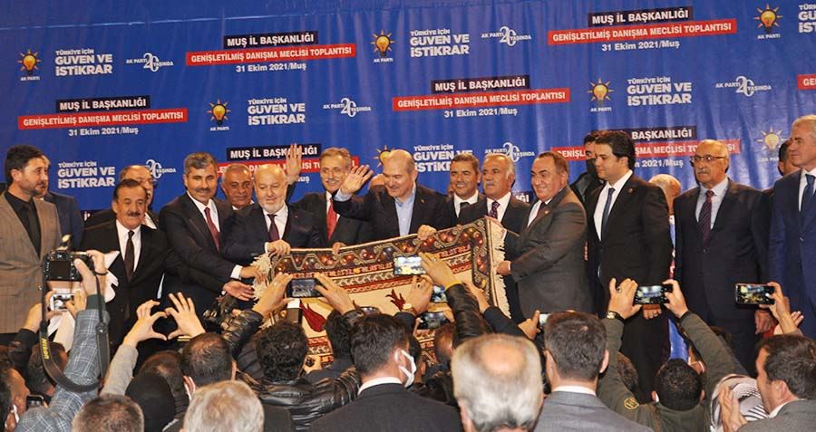 Düzenlenen toplantıda bir konuşma yapan İçişleri Bakanı Süleyman Soylu, uzun bir aradan sonra danışma meclisi toplantısı yaptıklarına dikkat çekerek şunları söyledi: “Kıymetli dava arkadaşlarım, kıymetli Muşlu hemşerilerim bugün burada uzun zamandan beri ilk kez bir danışma meclisi gerçekleştiriyoruz. Salgından sonra ilk kez bir araya geliyoruz. Bizim danışma meclisi gerçekleştirmediğimizi görenler havalara girmişler. Biz öyle güçlü bir aileyiz ki ayağa kalktığımız andan itibaren o yalancıların ve riyakârların soyasını bir bir açığa çıkarırız. Hem meydanlardan çıkardık hem de sandıklarda çıkardık. Bunlar meydanlardan da sandıklardan da korkarlar. 2023’te Kılıçdaroğlu HDP’liler arkanızda Avrupa da olsa Amerika da olsa bilesiniz, silineceksiniz. 2023, 2053 ve 2071 yolculuğuna hep birlikte devam edeceğiz. Kıymetli AK kadrolarım değerli dava arkadaşlarım 2023 yılına kadar çok çalışmaya ve 2023 yılında bunlara tarihi bir hezimet yaşatmaya hazır mıyız? Allah sizlerden razı olsun. Biz sizin emrinize amadeyiz. Hepinizi hürmetle, saygıyla ve muhabbetle selamlıyorum.” Dedi.