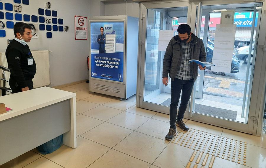 Kanun kapsamında; Kamu kurum ve kuruluşlarına ait mevcut resmî yapıların, Mevcut tüm yol, kaldırım, yaya geçidi, açık ve yeşil alanlar, spor alanları ve benzeri sosyal ve kültürel alt yapı alanları ile gerçek ve tüzel kişiler tarafından yapılmış ve umuma açık hizmet veren her türlü yapıların, Özel ve kamu toplu taşıma sistemleri ile sürücü koltuğu hariç dokuz veya daha fazla koltuğu bulunan özel ve kamu toplu taşıma araçlarının, bilgilendirme hizmetleri ile bilgi ve iletişim teknolojisinin, engelli bireylerin erişebilirliğine uygun olması zorunludur. Kurum olarak ilimizdeki kamu kurum ve kuruluşlarda denetimlerimizi sürdürüyoruz. Denetimler kapsamında engelli bireylerimizin banka şubelerinde işlemlerini daha kolay yapmaları için erişebilirlikler kontrol edildi” ifadelerini kullandı.