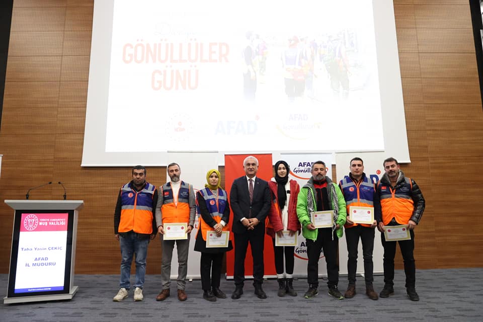AFAD Muş İl Müdürlüğü tarafından "5 Aralık Dünya Gönüllüler Günü" kapsamında "asrın felaketi" olarak bilinen Kahramanmaraş merkezli depremlerde aktif görev alanlar için program düzenlendi.