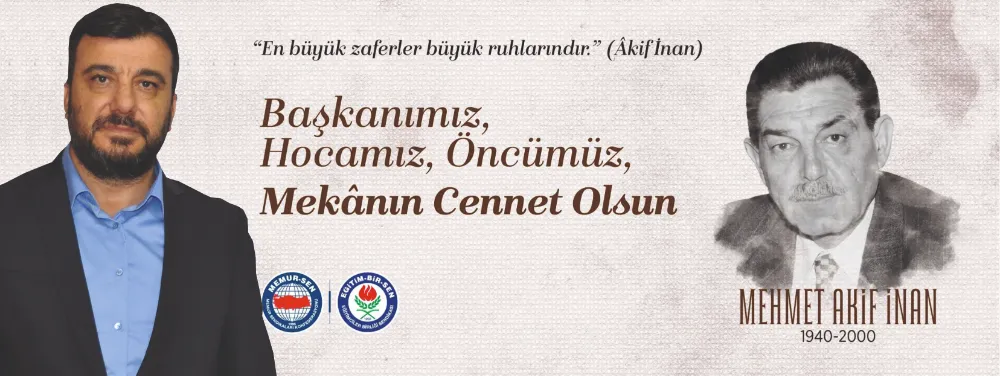 Memur-Sen Muş Temsilcisi ve Eğitim-Bir-Sen Şube Başkanı Mahir Barışan, Eğitim-Bir-Sen Kurucu Genel Başkanı Mehmet Akif İnan’ı vefatının 26. yıl dönümünde rahmet ve minnetle andı. Barışan, İnan’ın ahlakı, medeniyeti ve insaniliği merkeze alan mücadelesinin bugün de yol gösterici olduğunu vurguladı.