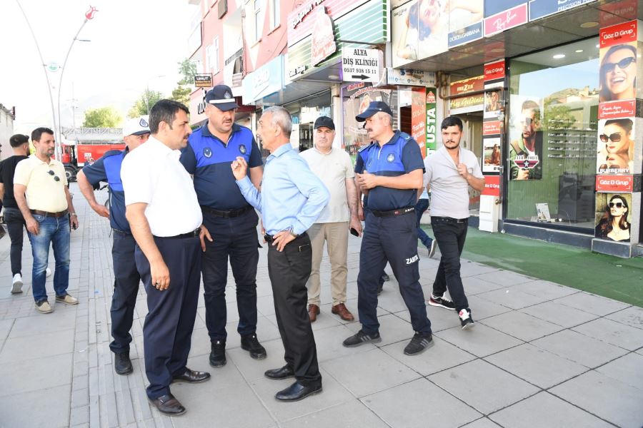 Kaldırımları işgal eden işletmeleri uyarmak üzere başkan yardımcıları da zabıta ekipleri ile birlikte denetim yaptı.