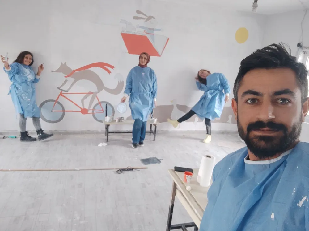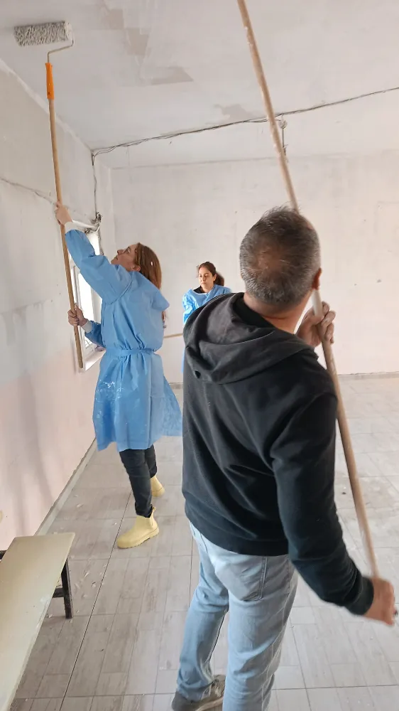 Kendi imkanlarıyla boya ve diğer malzemeleri alan Çetin ve diğer sağlık çalışanları, hafta sonları geldikleri okulda öğretmenlerin de yardımıyla tek derslikli okulun duvarlarını boyayıp resimlerle süsledi, sıraları temizledi.