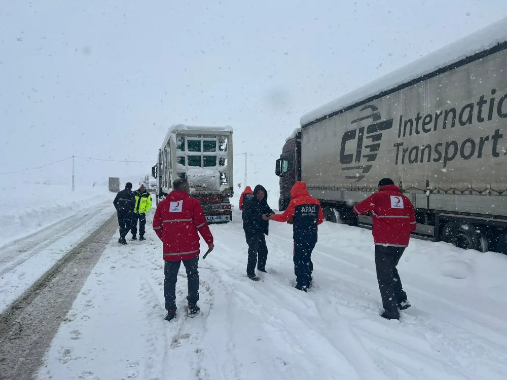 Kızılay Muş Afet Müdahale Merkezi ve AFAD ekipleri, uzun süredir araçlarında bekleyen sürücülere sıcak yemek ve içecek ikramında bulundu. Sürücülerin temel ihtiyaçlarının karşılanması için yapılan bu destek, zorlu hava koşullarında moral kaynağı oldu.