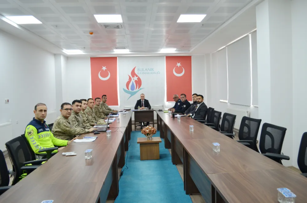Bulanık Kaymakamı Ömer Övünç Koşansu başkanlığında gerçekleştirilen toplantıda, ilçenin asayiş durumu tüm yönleriyle ele alınırken; okul güvenliğinden trafik denetimlerine, suçla mücadeleden teknolojik takip sistemlerine kadar birçok başlıkta yeni tedbirler ve uygulamalar değerlendirildi.