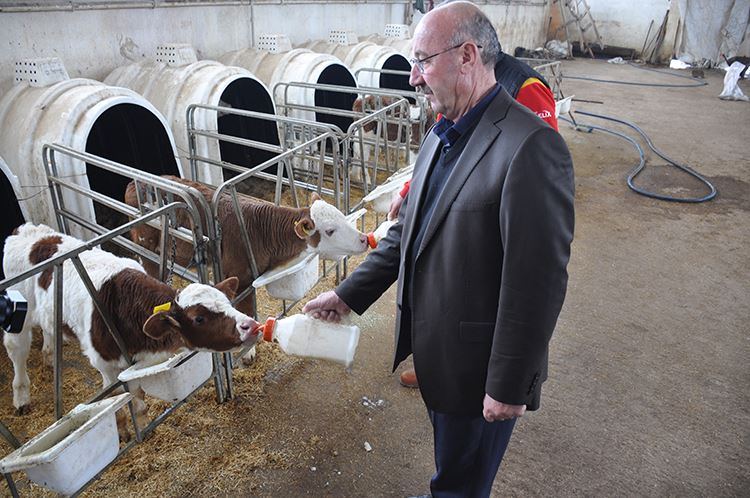 Besici Sabri Uşar, 30 yeni buzağının daha dünyaya geldiğini 30 buzağının da yakın zamanda doğmasını beklediklerini belirterek şunları söyledi: “İşletmemizde yaklaşık 100 tane büyükbaş hayvanımız var. Şimdiye kadar 30 buzağı doğdu. Yeni doğan buzağılarımızı sabah akşam biberonla besliyoruz. Bir bebeğe nasıl bakılıyorsa bizler de yeni doğan buzağılara 3 ay boyunca o şekilde bakıyoruz. 30 buzağının daha doğmasını bekliyoruz. İnşallah onları büyütüp işletmemize katacağız. Yeni doğan buzağılar biz hayvan yetiştiricileri için çok önemlidir. Bir bebek gibi olduklarından dolayı olası bir hastalığa karşı onları korumak için mücadele ediyoruz. Çalışmalarımızda tek gayemiz yeni buzağıların ilk 3 ayını sorunsuz bir şekilde atlatmaktır. 3’üncü aylarından sonra biberonla beslemeyi bırakıp karma yem vererek daha da güçlenmelerini sağlıyoruz” ifadelerini kullandı.