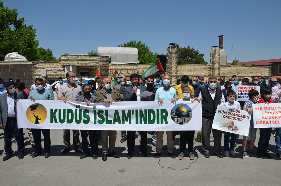 Basın açıklamasından önce Hacı şeref Camii'nde, şehitler için gıyabi cenaze namazı kılındı. Ardından belediye meydanında toplanan onlarca kişi İsrail’in Filistin de Gazze ve Mescid-i Aksa'ya yönelik saldırılarına tepki gösterdi.