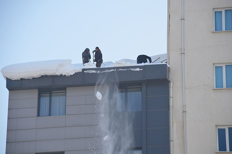 Hem can hem de mal güvenliği için tehlike oluşturan karları temizleyen işçiler, metrelerce yüksekten düşmemek için kendilerini iple bağlayarak güvenlik önlemi alıyorlar. Bunun dışında ipin kopma olasılığı göz önünde bulundurularak bir kişide ipi tutarak arkadaşına destek oluyor. işçiler yapmış oldukları iş karşılığında temizlemiş oldukları çatı büyüklüğüne göre para alarak evlerine ekmek götürüyorlar.