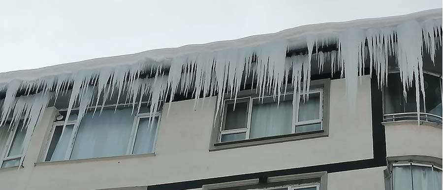 ÇATILARDA OLUŞAN BUZ SARKITLARI TEHLİKE OLUŞTURUYOR