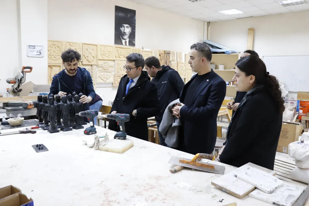 Muş Alparslan Üniversitesi el sanatları atölyesini ziyaret eden E Tipi Kapalı Cezaevi Müdürü Ferhat Tuncay, cezaevindeki mahkumların yeniden topluma kazandırılması ve rehabilitasyonu için düzenlenebilecek kurslar ile denetimli serbestlik kapsamında gerçekleştirilebilecek projeler üzerine fikir alışverişinde bulundu