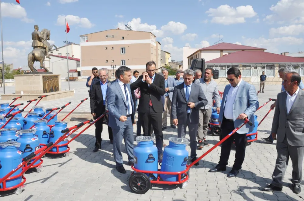 Muş’un Bulanık ilçesinde çiftçilere Bulanık Yerel Eylem Grubu Derneği tarafından süt güğümü, süt sağım makinası ve süt taşıma el arabası düzenlenen törenle dağıtıldı.