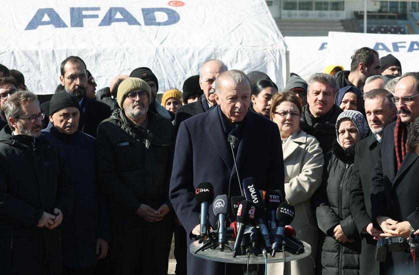 Kahramanmaraş’ta deprem bölgesinde incelemelerde bulunan Cumhurbaşkanı Recep Tayyip Erdoğan, depremzedeler için oluşturulan çadır kenti ziyaret etti ve yetkililerden bilgi aldı. İncelemelerinin ardından basın mensuplarına açıklamalarda bulunan Cumhurbaşkanı Erdoğan, büyük bir felaketle karşı karşıya olunduğunu belirterek, pazartesi günü 04.17’de gerçekleşen deprem felaketinin 10 ili vurduğunu ve merkez üssünün Kahramanmaraş olduğunu kaydetti.