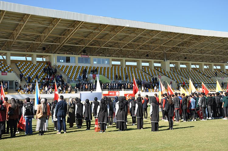 Bugün burada bu zaman diliminde çok önemli Cumhuriyetin eserleriyle karşı karşıyayız. Çok uzağa gitmeden bu bulunduğumuz stat. Muş’ta pek çok yerde spor tesisleri yapılıyor. Hemen yan tarafta kapalı spor salonu, okçuluk tesisi onun dışında karşımızda spor lisesi ve çok amaçlı spor salonun da inşaatları yükselmektedir. Her beldemizde ve köylerimizde bir spor tesisi söz konusudur. Atatürk’ümüzün bahsettiği ‘Cumhuriyetin eserleriyle Dünyada hak ettiği yeri alacaktır’ ifadesi aslında Muş ölçeğinde de kendini gösteriyor. Bugün itibariyle Türkiye’nin ilk yerli ve milli arabası da seri üretim bandından inecek. İşte aslında Atatürk’ün hedef gösterdiği ve bize vasiyet ettiği hususlar tek tek yerine geliyor. Cumhuriyeti sevmek, Atatürk’ü sevmek aslında Cumhuriyetin eseriyle yaşamasını sağlamaktır. Bu açıdan sorumluluğumuz büyüktür, bize düşenleri yapıyoruz, yapacağız. İnşallah gelecek nesiller de, siz sevgili gençler de daha ilerilere bu memleketi götüreceksiniz. Uzayda da Türkiye var. Belki Marsa ayak basan, güneş sisteminin dışına çıkan Türk insanları da buradaki gençlerden bazıları olacak çünkü vizyonumuz büyük, hedeflerimiz çok yüksek. Bu gençliğe güveniyoruz. Bu memleketin içeriden, dışarıdan pek çok düşmanı olabilir çünkü meyveli ağaç taşlanır.