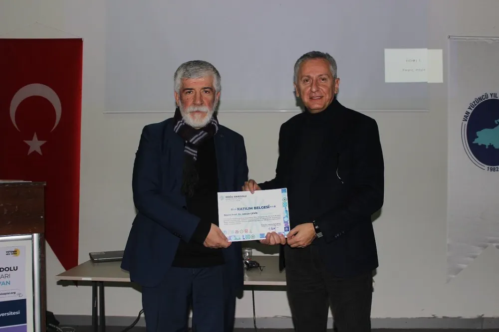Sunumun ardından Yüzüncü Yıl Üniversitesi Sosyal Bilimler Enstitüsü Müdürü Prof. Dr. Bekir Koçlar, Prof. Dr. Adnan Çevik’e teşekkür belgesi takdim etti.