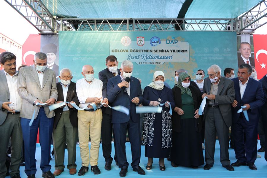 Binali Yıldırım ve eşi Semiha Yıldırım daha sonra ilçe merkezinde düzenlenen ve DAP BKİ tarafından finanse edilerek yapımı tamamlanan semt kütüphanesi açışına katıldı. Eşi Semiha Yıldırım adına düzenlenen kütüphanenin açılışında konuşan Binali Yıldırım, "Gölova’mıza değer katacak, hemşehrilerimizin beyin gıdasına destek sağlayacak bu güzel eserin açılışını yapıyoruz. Böyle bir incelik gösterip, bu kütüphanenin ismine Semiha Yıldırım vermenizden dolayı şükranlarımı sunuyorum. Semiha hanımımın ömrünün büyük bir kısmı öğretmen olarak yavrularımızı yetiştirmekle geçti. Okulla geçti. Kütüphane isminin de ona yakıştığını düşünüyorum” dedi.