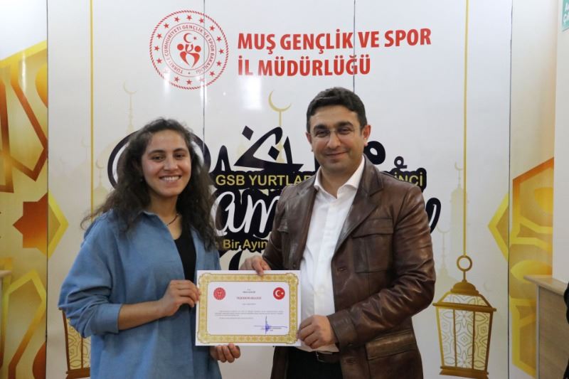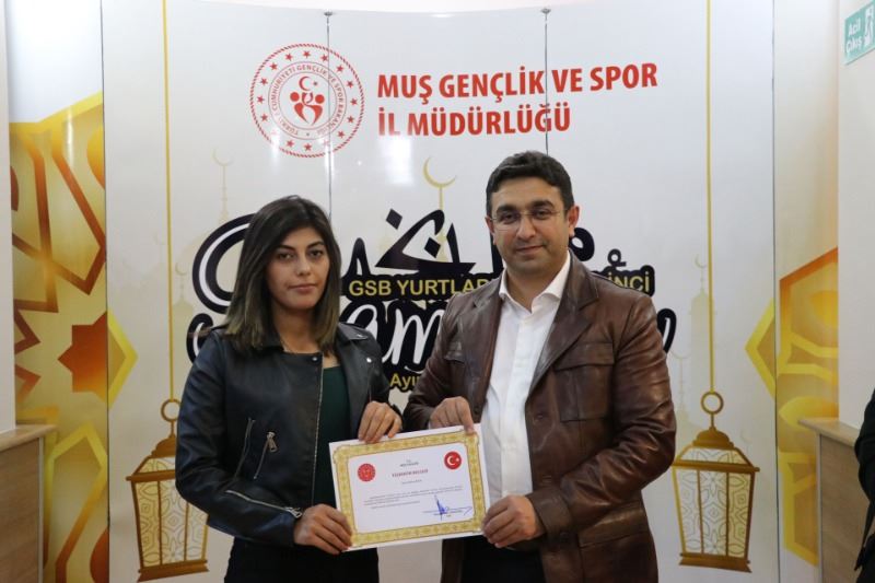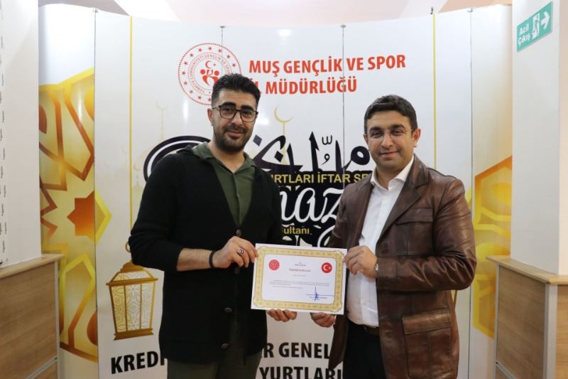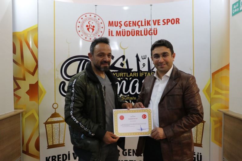 Müdür Taşdemir, konuşmasının devamında deprem bölgesine Muş’tan aşçı, berber gibi mesleklerden gönüllüler götürdüklerini, ayrıca Muş’tan yaşam malzemelerini bölgeye götürdüklerini belirterek: “Deprem bölgesine gittiğimizde aşçı sıkıntısı vardı. Buradan aşçı gönderdik ve gerçekten çok güzel yemekler yapıldı. Her taraf yıkıldığından açık yer olmadığından tıraş yapabilecek berber ihtiyacı vardı. Buradan berber götürerek oradaki insanların tıraş olmalarını sağladık. Bu konuda oradaki vatandaşlar duydukları mutluluğu bizlere ilettiler. Yani deprem bölgesinde temel ihtiyaç ne varsa hepsini gidermiş olduk. Gelen malzemeler orada yolların kenarlarına gelişi güzel atılmış, çirkin bir görüntü oluşturuyordu. Gönderilen yardımların orada güzel bir şekilde ayrıştırılması için gönüllülerimiz çok büyük emek sarf ettiler. Yine buradan depremin etkilediği her yere buradan su gönderdik. Temel yaşam malzemeleri gönderdik. Yani biz şunu dedik; gençlik ve spor sadece spordan, gençlerden ve yurtlardan ibaret değildir, aynı zamanda ülkemizde deprem gibi bir musibet olduğu zaman bizler yardım kuruluşları gibi yardım toplayabiliyoruz, gönderebiliyoruz. Bu çok kıymetli ve değerlidir. Aslında gönüllü olarak yapılan her şey çok kıymetlidir. Sizlerde bunu gerçekleştirdiniz. İyi ki varsınız, hepinize çok teşekkür ediyorum. Sizin yapmış olduğunuz çalışmaların karşılığını vermez ama Sayın Valimiz Doç Dr. İlker Gündüzöz’den sembolik olarak bir teklifte bulunduk. O da sizlere birere Teşekkür Belgesi imzalayarak gönderdiler.”