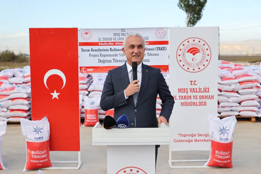 Muş Tarım ve Orman Müdürlüğü tarafından "Tarım Arazilerinin Kullanımını Etkinleştirilmesi" (TAKE) Projesi kapsamında yüzde 50 hibe ile 595 ton buğday tohumu törenle dağıtılmaya başlandı.