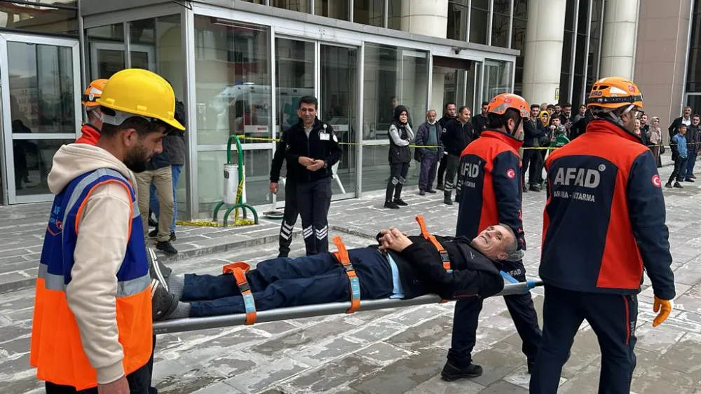 Muş Devlet Hastanesinde, Türkiye Afet Müdahale Planı (TAMP) ve Hastane Afet ve Acil Durum Planı (HAP) çerçevesinde tatbikat gerçekleştirildi.