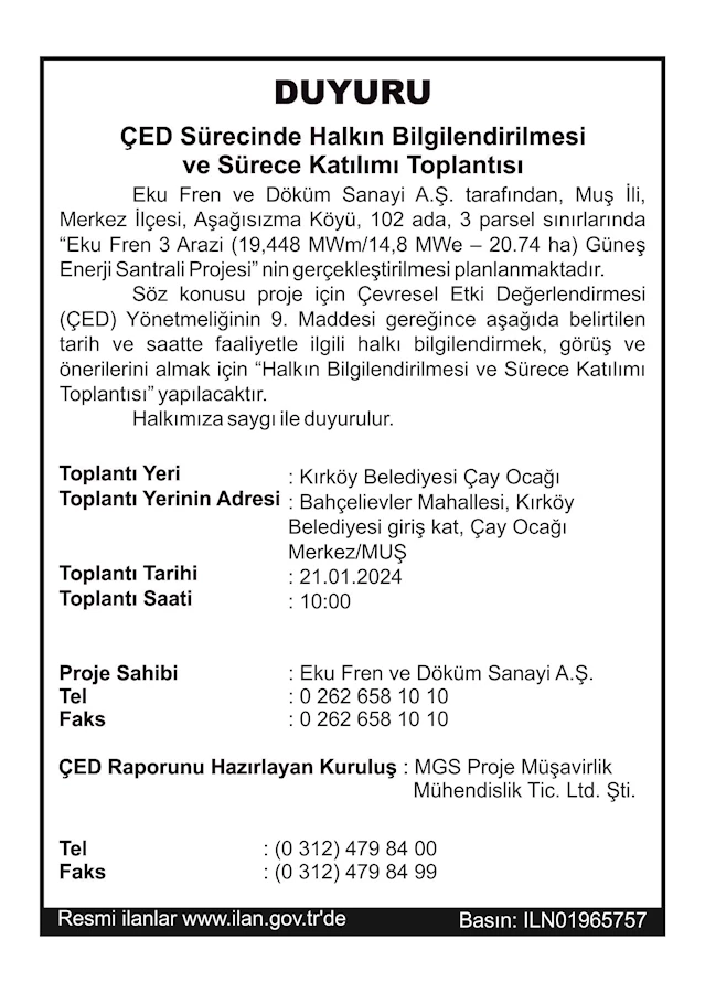 ÇED Sürecinde Halkın Bilgilendirilmesi ve Sürece Katılımı Toplantısı