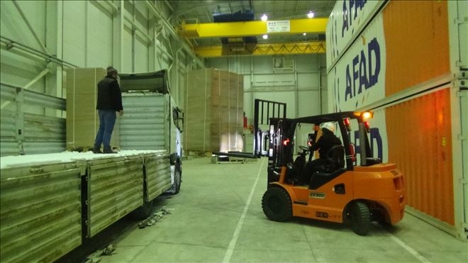 Elazığ´da Sivrice merkezli 6.5 büyüklüğünde meydana gelen depremin ardından Muş´taki AFAD Bölge Lojistik Deposundan 10 tır yaşam malzemesi Elazığ´a gönderildi.
