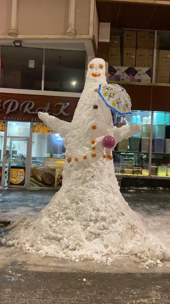 Kentte 3 gün boyunca devam eden yağışın ardından, Saray Mahallesi'ndeki iş yeri sahipleri 3 metrelik kardan adam yaptı. Esnaf Abdullah Yıldız, her yıl kar yağışının ardından esnaflar olarak bir araya gelip kardan adam yaptıklarını söyledi.