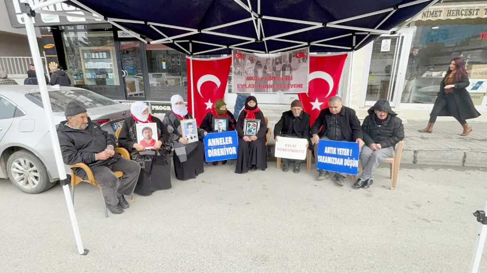 Muş’ta çocuklarının terör örgütü tarafından dağa götürüldüğünü öne süren aileler, DEM Parti İl Başkanlığı önünde sürdürdükleri evlat nöbetinde barış ortamına dikkat çekerek, yıllardır haber alamadıkları çocuklarına “teslim olun, evinize dönün” çağrısında bulundu. Aileler, hasret ve belirsizliğin artık sona ermesini istediklerini dile getirdi.