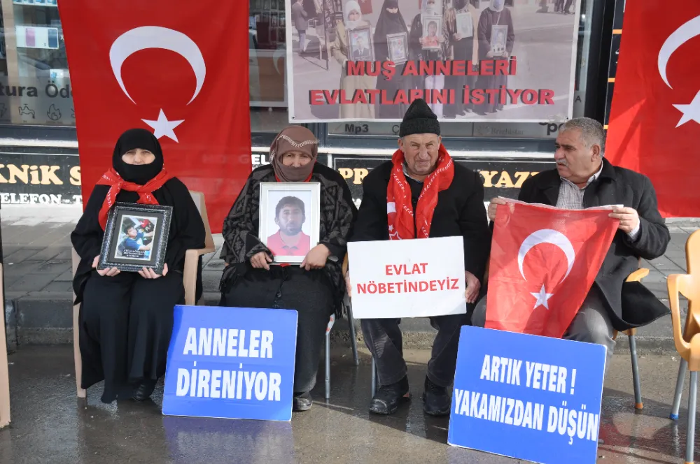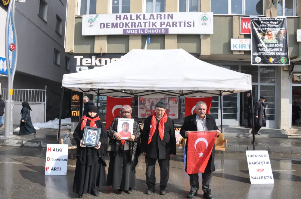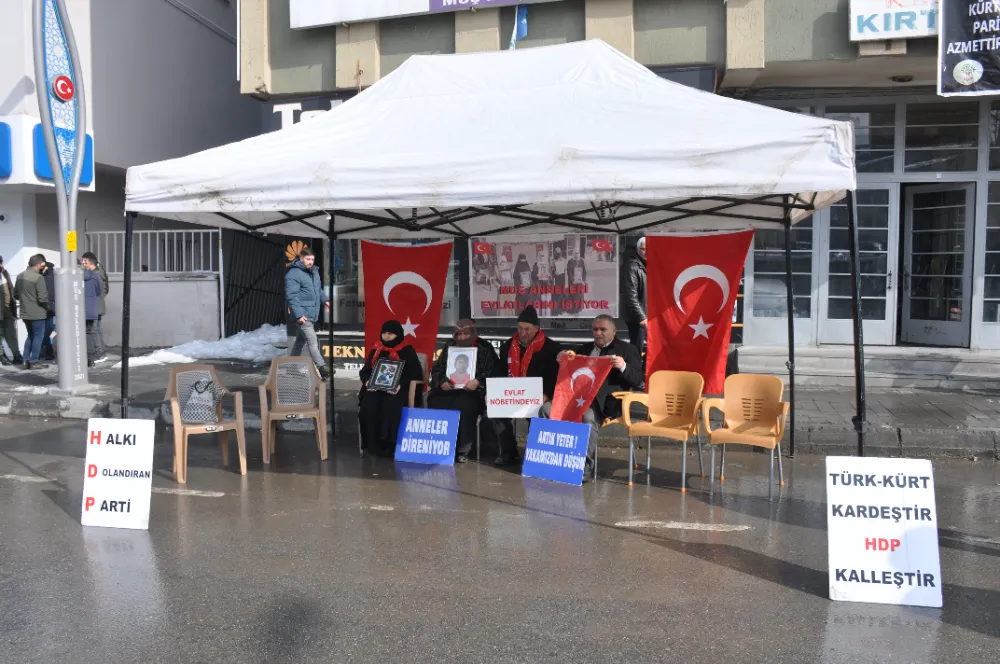 Muş'ta çocuklarının terör örgütü PKK tarafından dağa götürülmesinden HDP'yi sorumlu tutan aileler, partinin il başkanlığı binası önündeki oturma eylemini sürdürdü.