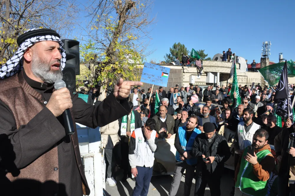 Muş'ta Mescidi Aksa Platformu tarafından İsrail'in Gazze'ye yönelik saldırılarını protesto etmek için düzenlenen "Büyük Gazze Yürüyüşü" etkinliğine katılan Filistinli Alimler Birliği Başkan Nevaf Tekruri, savaşı mücahitlerin başlatmadığını söyledi.