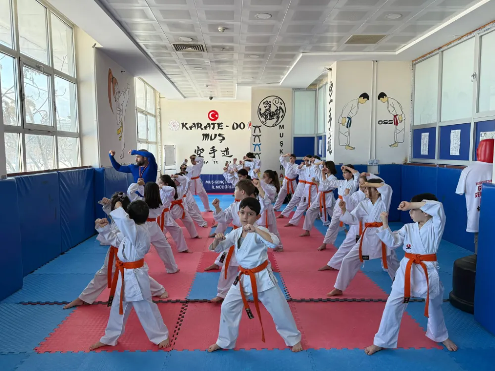 Muş Gençlik ve Spor Müdürlüğü, gençlerin fiziksel ve zihinsel gelişimine katkı sunmak amacıyla karate branşındaki çalışmalarını aralıksız sürdürüyor. Okul Sporları faaliyetleri kapsamında yürütülen karate antrenmanları, uzman antr