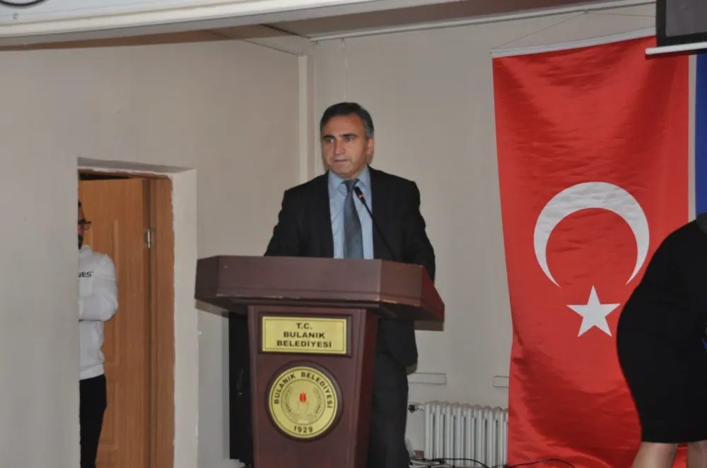 Bulanık Kaymakamı ve Belediye Başkan Vekili Oğuzhan Ocak ise, yaptığı konuşmada bu projenin Muş’ta ilk olduğunu belirterek sözlerini şöyle sürdürdü: “İşin özü şu bu Avrupa birliği projesinin yazılması, belli bir noktaya getirilmesinde emeklerin haricinde en önemli noktası sizlerin istihdamda ve bundan sonraki süreçte neler yapabilirsiniz onun değerlendirilmesini yapıyoruz. Bulanık potansiyel bakımında tarım ve hayvancılık düzeyinde Türkiye’de 13. Sırada bazı düzeylerde 4. veya 5. sıradadır. Dolaysıyla bir potansiyelimiz var, ciddi bir gücümüz var. Bu gücümüzü pazarlama açısında eksik kaldığımız yerler var. Bunları tamamlamak adına siz gençlere çok iş düşüyor. Bu nedenle projenin asıl hedefi sizlersiniz. Yarın öbür gün kooperatifleşmek adına, çiftlikleşme adına ve en önemlisi profesyonel tarıma geçme adına bu bir ön basamaktır. Bu basamağı iyi değerlendirmek gerekiyor. Bizler de bunun sizlerin zihninde ve genç beyinler olarak, dinamik beyinler olarak geleceğe yönelik bakış açısı olarak sizlerden geçtiğini düşünüyoruz."