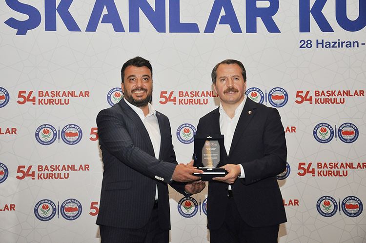 Memur Sendikaları Konfederasyonu (Memur-Sen) Genel Başkanı Ali Yalçın, Mahir Barışan’a göstermiş olduğu başarılı sendikal çalışmalardan dolayı plaket verdi.